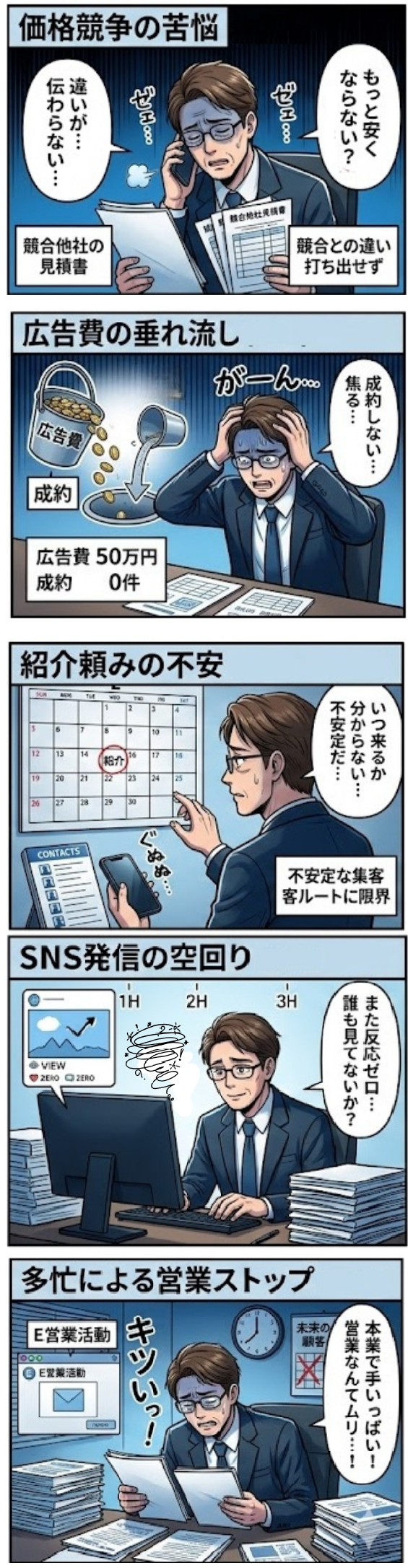 ChatGPTやGeminiなどのAIを活用した仕組み構築の支援、コンサルティングを行っている。この経験から「士業への恩返し」を決意。自身のマーケティングスキルとAI技術を掛け合わせ、士業・コンサルのための集客支援に特化。累計120名以上のサポートを行う。現在はAIマンガを活用したブランディング集客コンサルティングが好評である。