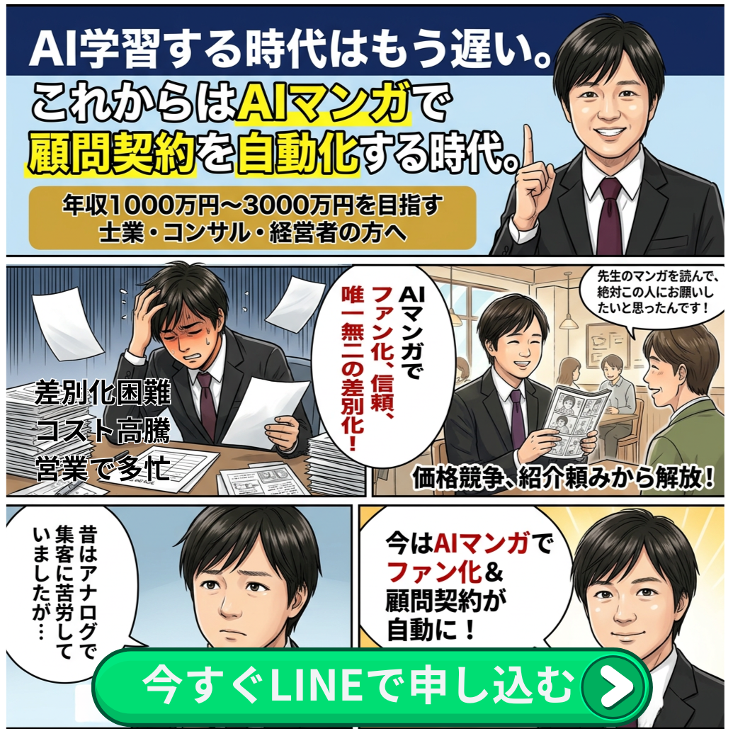 「97%の士業・コンサル・経営者がやってない、AIマンガを活用した集客から売上アップする仕組み構築術とは?」