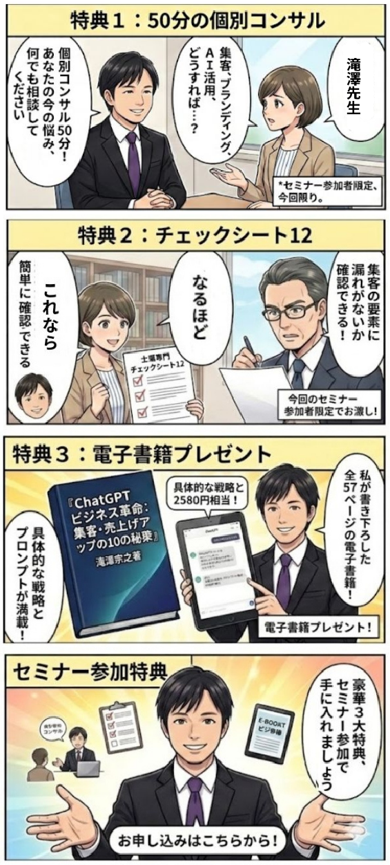 さらに今から3日以内にセミナーに申し込むことによって、得られる特典もあります。